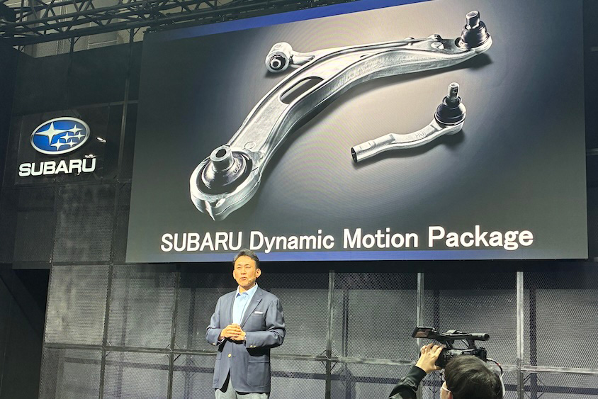新商品のひとつ目がSUBARU Dynamic Motion Package。現行レヴォーグの旋回性を高める狙いでロワアームとタイロッドエンドを強化した部品が設定された。