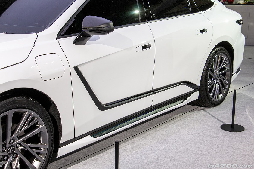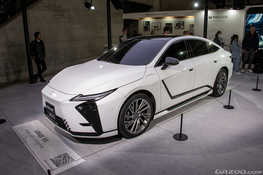 レクサスの新世代電動車の先陣を切るモデルとして今春デビューが予定されているES。モデリスタのボディパーツを組み合わせることで、都会的かつ先進的に洗練されたイメージのESが出来上がる。