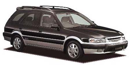 セダン「スプリンター」ベースのRVワゴン、3代目を迎えたカリブ(SPRINTER CARIB)。先代よりも全幅で40mm、全高で20mmサイズアップされたボディによって、キャビン、ラゲッジ共にスペースを拡大している。エクステリアは、縦長のテールライトと、「CARIB」ロゴ入りのフロントグリルが特徴的。横置きに搭載するエンジンは、ハイメカツインカム直列4気筒1600cc(115馬力)と、1800cc(120馬力)。それぞれ、5速マニュアルまたは4速ATのトランスミッションと組み合わされる。駆動方式はフルタイム4WDのみ。サスペンションは、前後マクファーソンストラット式4輪独立懸架(リアデュアルリンク)。ベーシックな「Sツーリング」は、1.6Lエンジンを搭載、「Vツーリング」/上級「Zツーリング」は、1.8Lを搭載し、「RVパッケージ」は、専用バンパー、テールゲートグリップ、フィールドモニターをセットにし、全車に装着可能。